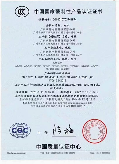 电梯空调3C认证