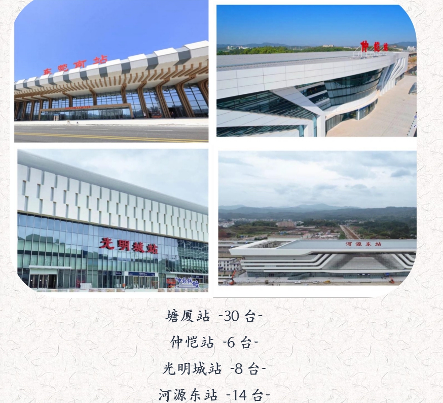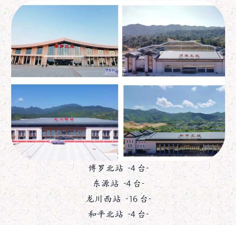 赣深高铁广东段光明城站、东莞南站、惠州北站、仲恺站、博罗北站、河源东站、河源北站、龙川西站、